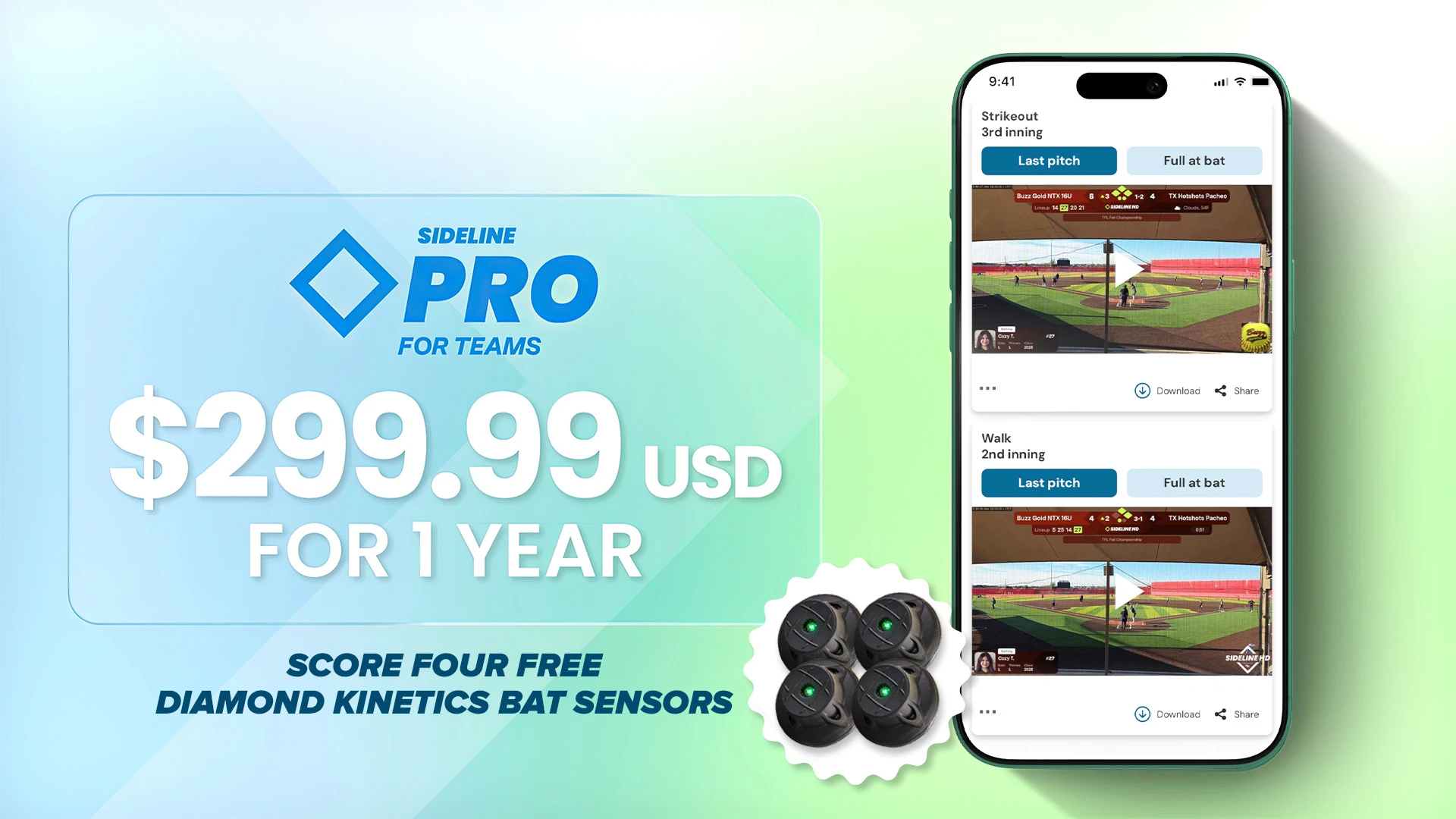 SidelinePRO FOR TEAMS gives every player on a team unlimited access to highlights, HD game streaming, and full-game replays—across all teams they play on—with one affordable yearly subscription.